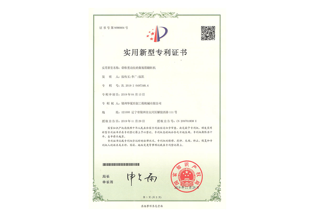 華夏聯(lián)創(chuàng)集團創(chuàng)始于2005年,憑借公司品牌優(yōu)勢、技術(shù)優(yōu)勢、人才優(yōu)勢、資金優(yōu)勢,以數(shù)十年磨一劍的博觀約取、厚積薄發(fā),自主研制生產(chǎn)具有先進水平的集裝箱翻轉(zhuǎn)機,翻轉(zhuǎn)平臺,智能化液壓翻板汽車裝卸。為用戶提供各種集裝箱裝卸設備、火車集裝箱、船舶裝卸機等自動裝卸設備。公司逐步形成了以工程機械為核心、擁有自主知識產(chǎn)權(quán)、在國內(nèi)具有一定影響力的企業(yè)。華夏聯(lián)創(chuàng)公司自成立以來,產(chǎn)品銷量持續(xù)高速增長,實現(xiàn)了跨越式發(fā)展,已經(jīng)成為行業(yè)知名品牌。